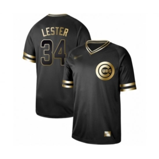 >Men's Chicago Cubs #34 Jon Lester Authentic Black Gold Fashion Baseball Jersey