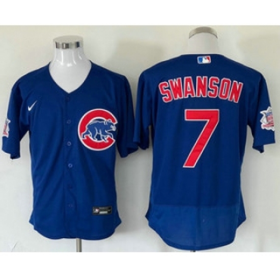 Men's Chicago Cubs #7 Dansby Swanson Blue Stitched MLB Flex Base Nike Jersey