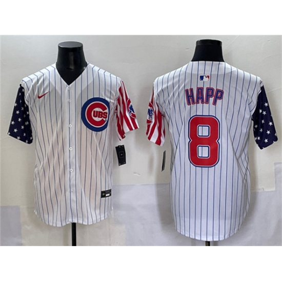 Men's Chicago Cubs #8 Ian Happ White Pinstripe 2025 Independence Day Vapor Premier Limited Stitched Baseball Jersey