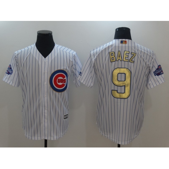 Men's Majestic Chicago Cubs #9 Javier Baez Authentic White 2017 Gold Program Flex Base MLB Jersey