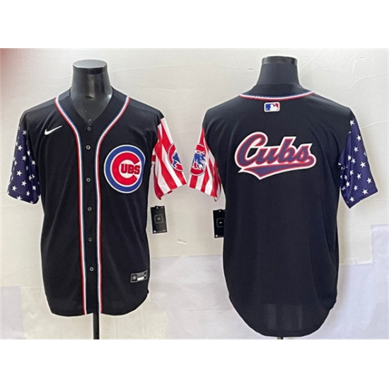 Men's Chicago Cubs Team Big Logo Black 2025 Independence Day Vapor Premier Limited Stitched Baseball Jersey