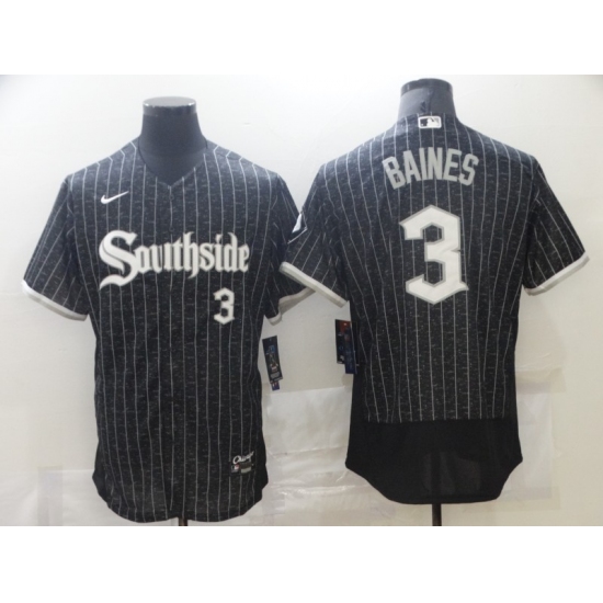 Men's Majestic Chicago White Sox #3 Harold Baines White Home Flex Base Authentic Collection MLB Jersey