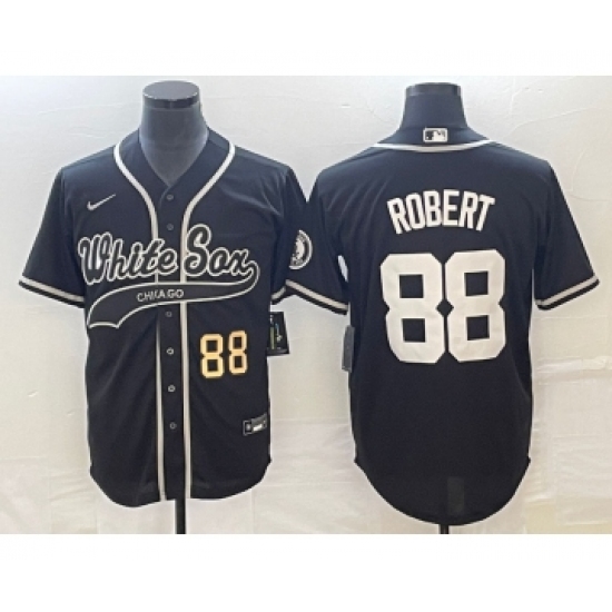 Men's Chicago White Sox #88 Luis Robert Black Gold Cool Base Stitched Baseball Jersey