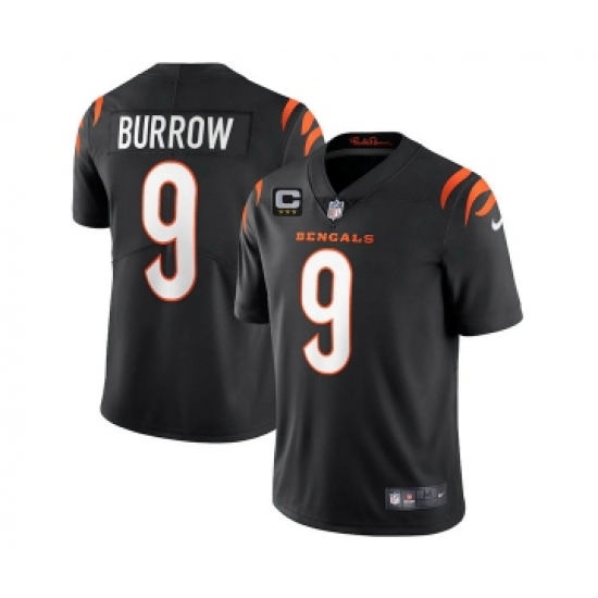 Men's Cincinnati Bengals #9 Joe Burrow 2022 Black With C Patch Super Bowl LVI Vapor Limited Stitched Jersey