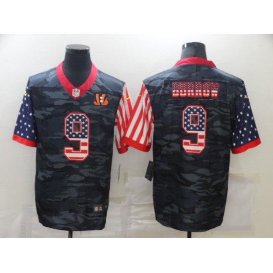 >Men's Cincinnati Bengals #9 Joe Burrow Camo Flag Nike Limited Jersey