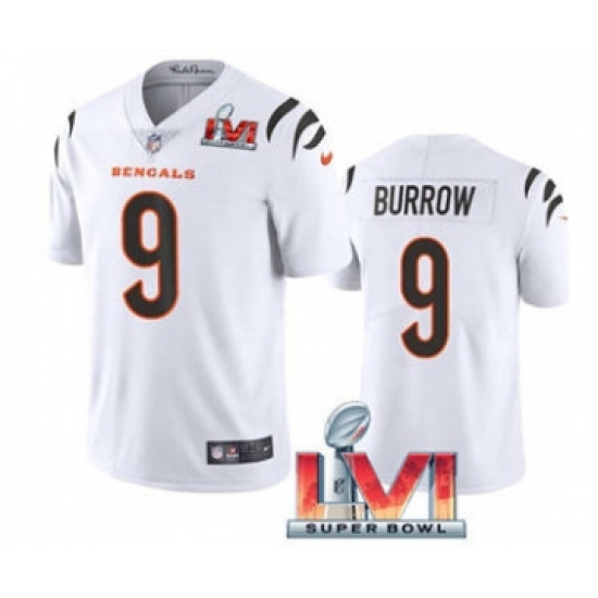Men's Cincinnati Bengals #9 Joe Burrow White 2022 Super Bowl LVI Vapor Limited Stitched Jersey