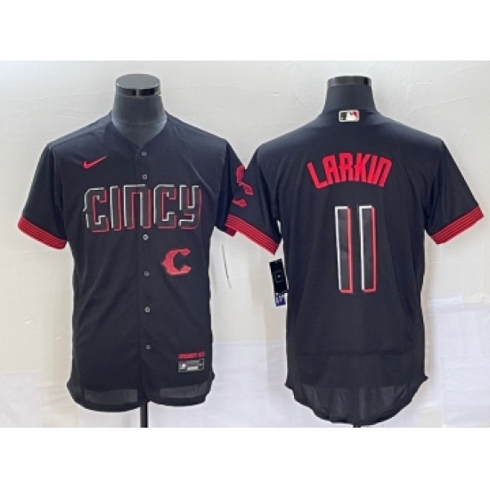 Men's Cincinnati Reds #11 Barry Larkin Black 2023 City Connect Flex Base Stitched Jersey 1