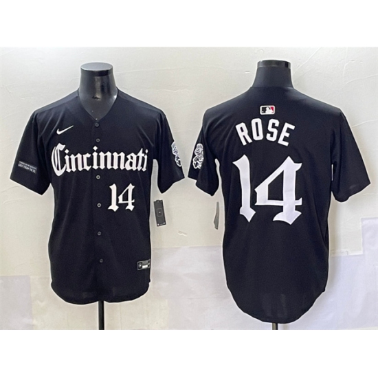 Men's Cincinnati Reds #14 Pete Rose Black 'Gothic Queen City Edition' Vapor Premier Limited Stitched Baseball Jersey