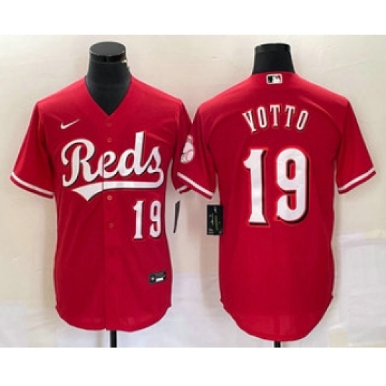 Men's Cincinnati Reds #19 Joey Votto Number Red Cool Base Stitched Baseball Jersey