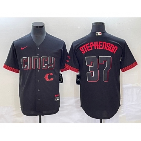 Men's Cincinnati Reds #37 Tyler Stephenson Black 2023 City Connect Cool Base Stitched Jersey1