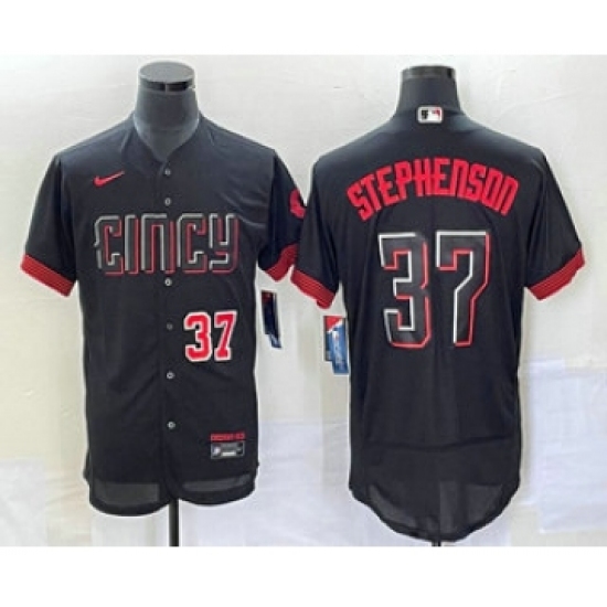 Men's Cincinnati Reds #37 Tyler Stephenson Number Black 2023 City Connect Flex Base Stitched Jersey 1