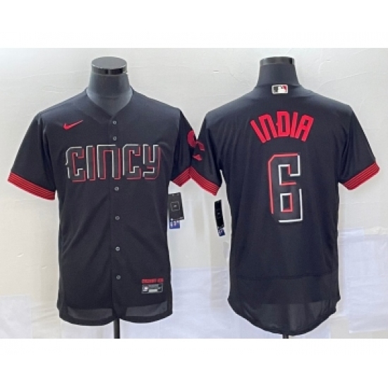 >Men's Cincinnati Reds #6 Jonathan India Black 2023 City Connect Flex Base Stitched Jersey