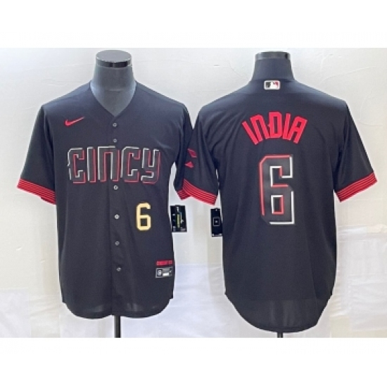 Men's Cincinnati Reds #6 Jonathan India Number Black 2023 City Connect Stitched Jersey1