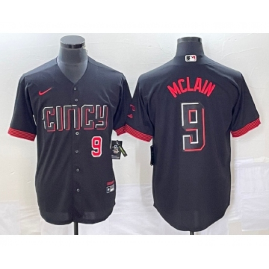 Men's Cincinnati Reds #9 Matt McLain Black 2023 City Connect Cool Base Stitched Jersey 1