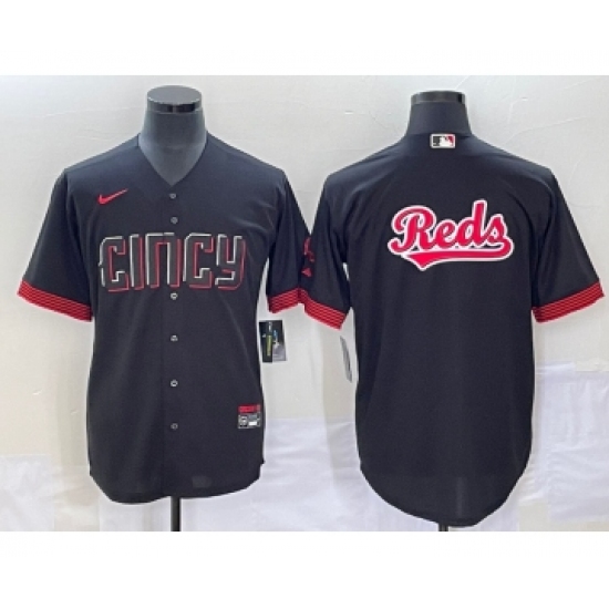 Men's Cincinnati Reds Big Logo Black 2023 City Connect Cool Base Stitched Jersey1