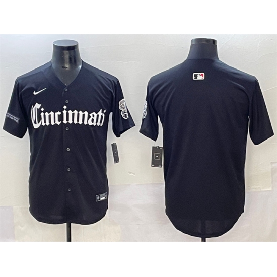 Men's Cincinnati Reds Blank Black 2023 City Connect Cool Base Stitched Jersey1