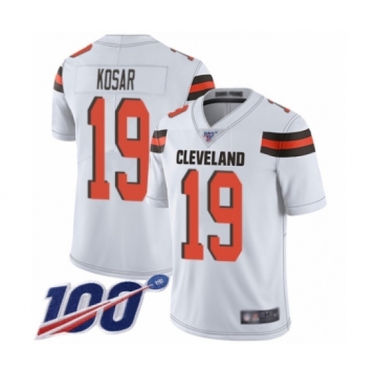>Men's Cleveland Browns #19 Bernie Kosar White Vapor Untouchable Limited Player 100th Season Football Jersey