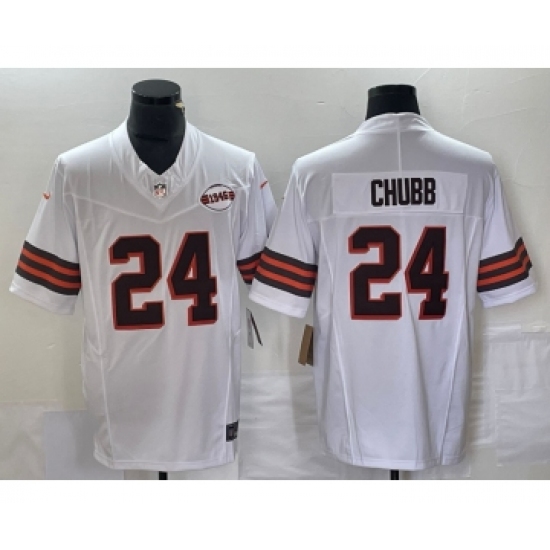 Men's Cleveland Browns #24 Nick Chubb 1946 White FUSE Vapor Stitched Nike Limited Jersey