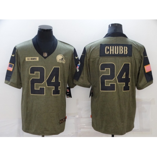Men's Cleveland Browns #24 Nick Chubb Nike Olive 2021 Salute To Service Limited Player Jersey