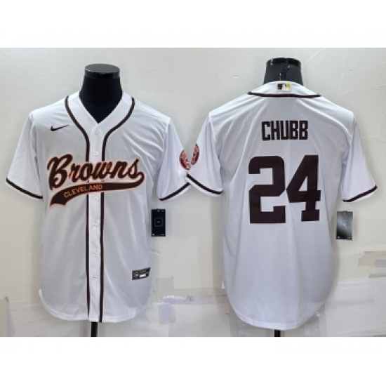 >Men's Cleveland Browns #24 Nick Chubb White Stitched Cool Base Nike Baseball Jersey