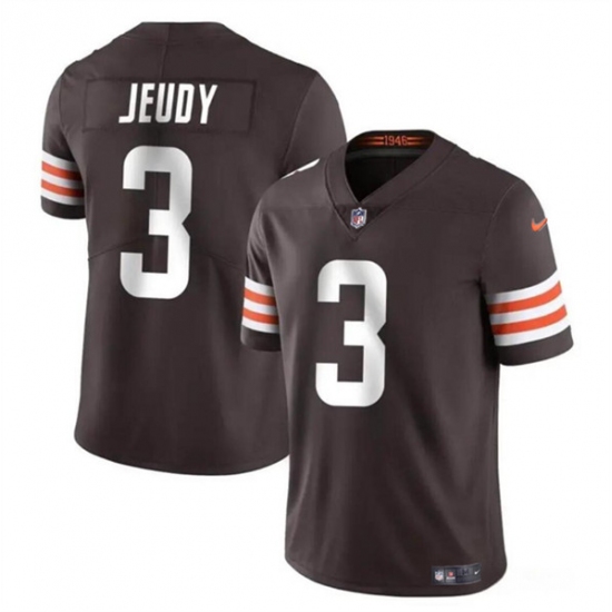 Men's Cleveland Browns #3 Jerry Jeudy Brown Vapor Limited Football Stitched Jersey