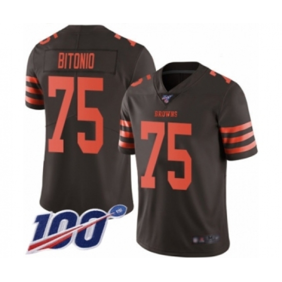 >Men's Cleveland Browns #75 Joel Bitonio Limited Brown Rush Vapor Untouchable 100th Season Football Jersey