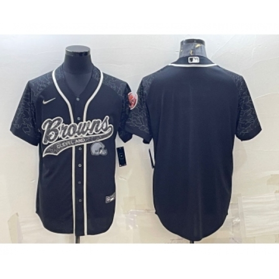Men's Cleveland Browns Blank Black Reflective With Patch Cool Base Stitched Baseball Jersey