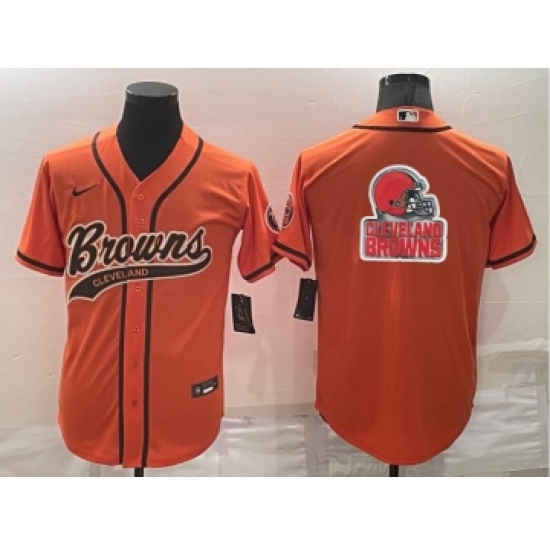 Men's Cleveland Browns Orange Team Big Logo With Patch Cool Base Stitched Baseball Jersey