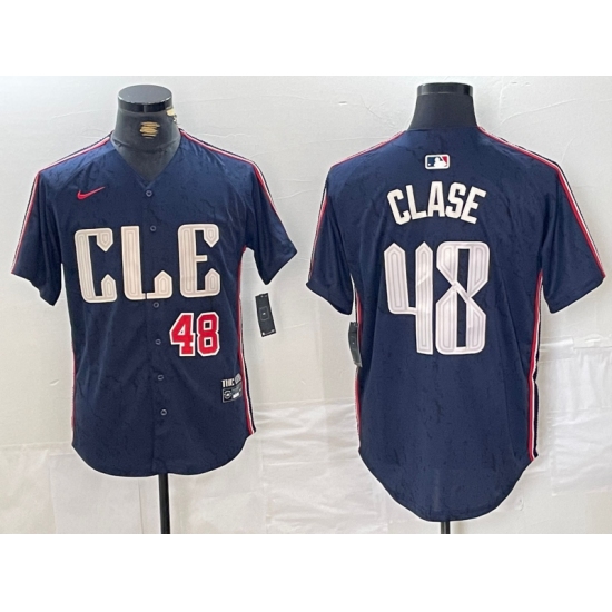 Men's Cleveland Guardians #48 Emmanuel Clase Number Navy 2024 City Connect Limited Stitched Jersey
