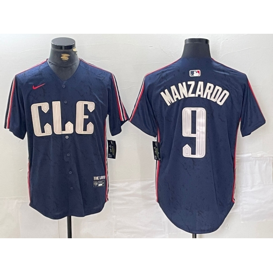 Men's Cleveland Guardians #9 Kyle Manzardo Navy 2024 City Connect Limited Stitched Jersey