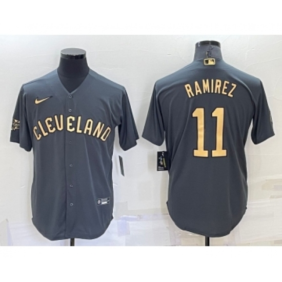 Men's Cleveland Indians #11 Jose Ramirez Grey 2022 All Star Stitched Cool Base Nike Jersey