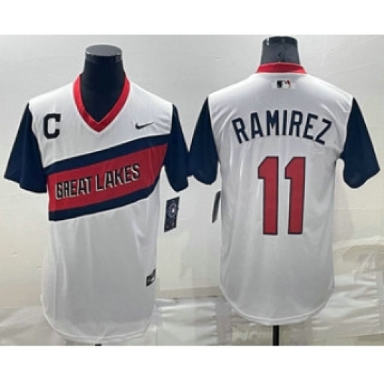 Men's Cleveland Indians #11 Jose Ramirez White 2021 Little League Classic Stitched Nike Jersey
