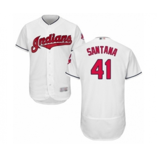 Men's Cleveland Indians #41 Carlos Santana White Home Flex Base Authentic Collection Baseball Jersey