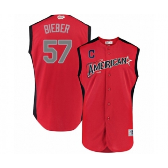 Men's Cleveland Indians #57 Shane Bieber Authentic Red American League 2019 Baseball All-Star Jersey