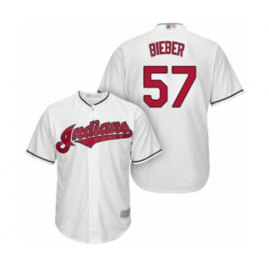 Men's Cleveland Indians #57 Shane Bieber Replica White Home Cool Base Baseball Jersey