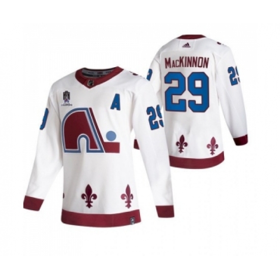 Men's Colorado Avalanche #29 Nathan MacKinnon 2022 White Stanley Cup Champions Patch Stitched Jersey