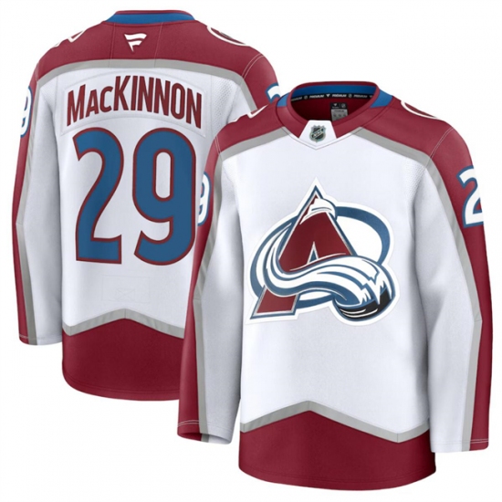 Men's Colorado Avalanche #29 Nathan MacKinnon White 2024-25 Away Stitched Jersey