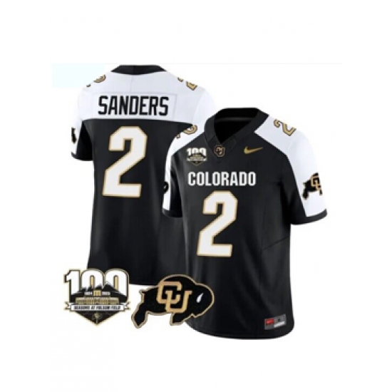 Men's Colorado Buffaloes #2 Sanders Black White Vapor Stitched Jersey - 100th Seasons At Folsom Field