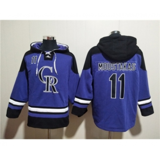 >Men's Colorado Rockies #11 Mike Moustakas Purple Ageless Must-Have Lace-Up Pullover Hoodie