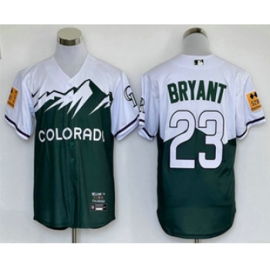 Men's Colorado Rockies #23 Kris Bryant Green 2022 City Connect Cool Base Stitched Jersey