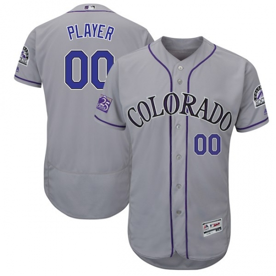 Men's Colorado Rockies Majestic Gray 25th Season Patch On-Field Flex Base Custom Jersey