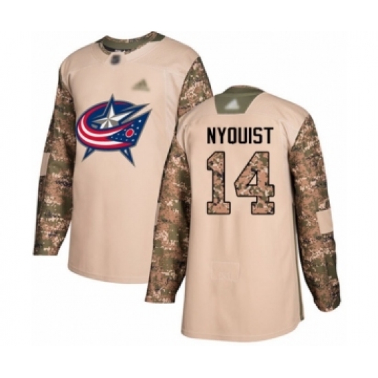 Men's Columbus Blue Jackets #14 Gustav Nyquist Authentic Camo Veterans Day Practice Hockey Jersey