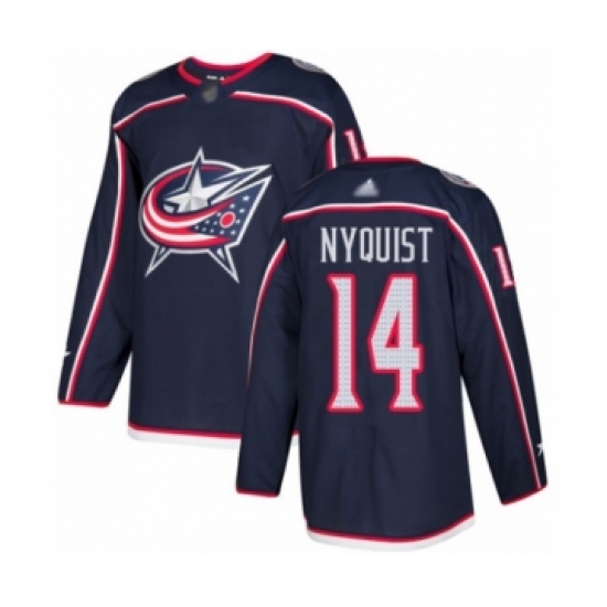 >Men's Columbus Blue Jackets #14 Gustav Nyquist Authentic Navy Blue Home Hockey Jersey