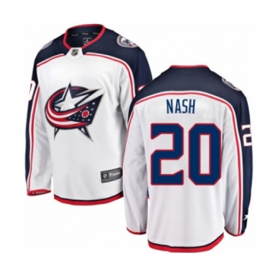 Men's Columbus Blue Jackets #20 Riley Nash Authentic White Away Fanatics Branded Breakaway NHL Jersey