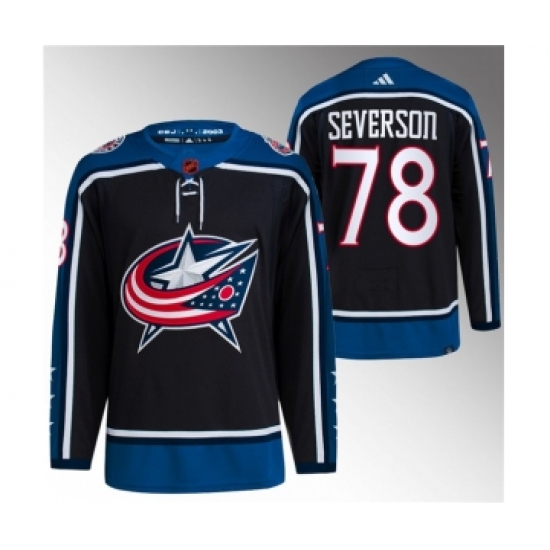 >Men's Columbus Blue Jackets #78 Damon Severson Black 2022-23 Reverse Retro Stitched Jersey