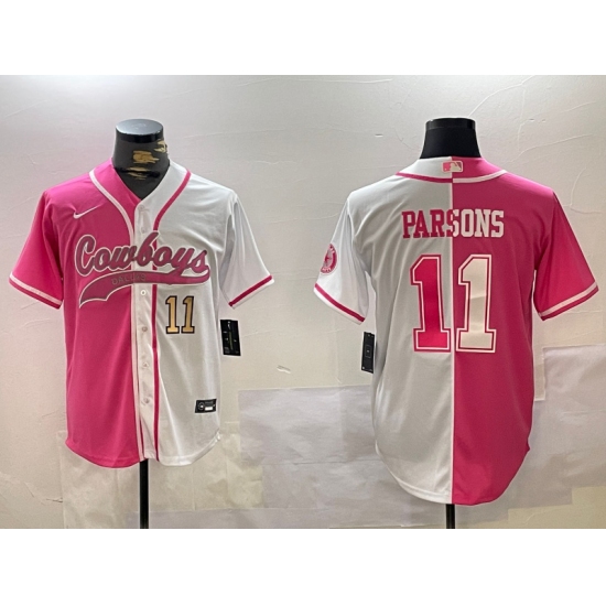 Women's Dallas Cowboys #11 Micah Parsons Pink With Patch Cool Base Stitched Baseball Jersey