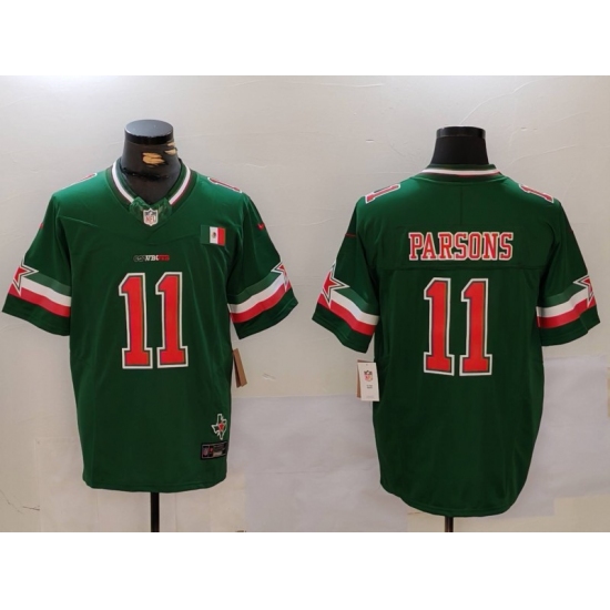 >Men's Dallas Cowboys #11 Micah Parsons 2024 Mexico Green FUSE Stitched Jersey