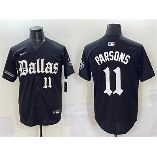 >Men's Dallas Cowboys #11 Micah Parsons Black 'Gothic Lone Star Edition' Limited Stitched Baseball Jersey