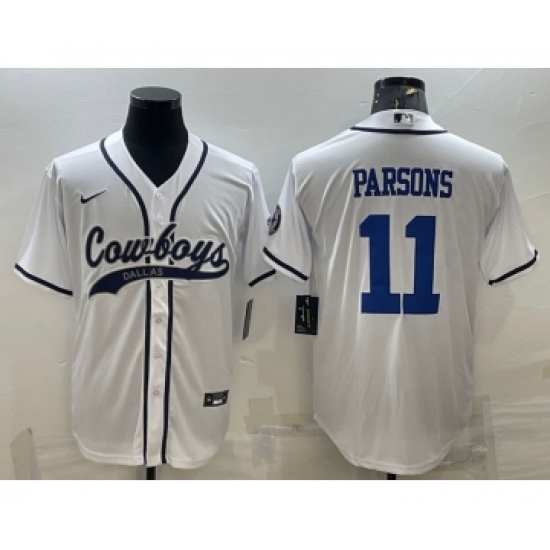 Men's Dallas Cowboys #11 Micah Parsons White With Patch Cool Base Stitched Baseball Jersey