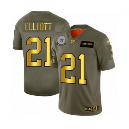 >Men's Dallas Cowboys #21 Ezekiel Elliott Limited Olive Gold 2019 Salute to Service Football Jersey